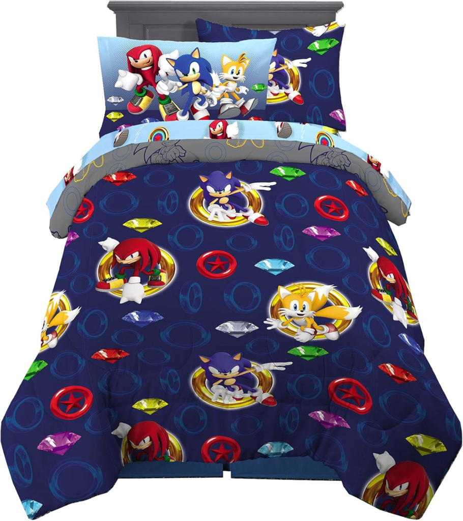 Add some high-speed style to your child’s bedroom with this colorful bedding set, featuring Sonic, Knuckles, and Tails from the popular Sega videogame.